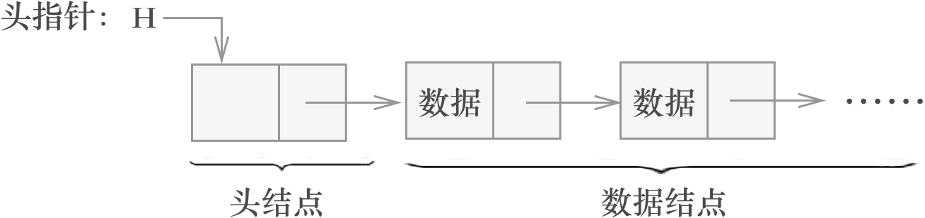 对于任意一个链表来说,其构成部分无疑是:头指针、头结点和存放数据的结点这 3 类,如下图所示: