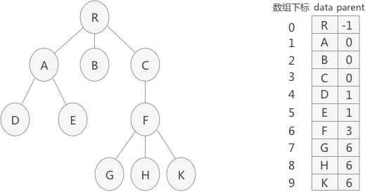 取一块连续的内存空间,在存储每个结点的同时,各自都附加一个记录其父结点位置的变量。