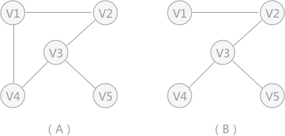 例如,图 1(A) 表示的就是一个图,其中 V1、V2、V3、V4 都是构成图的顶点,用集合 V 表示为: