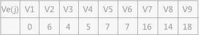 对图 1 中的 AOE 图求关键路径,首先完成 Ve(j)、Vl(j)、e(i)、l(i) 4 种统计信息的准备工作。Ve(j),求出从源点到各顶点的最长路径长度为(长度最大的):