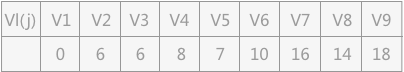 //构建Vl数组,在初始化时,Vl数组中每个单元都是18,如果每个边的汇点-边的权值比源点值小,就保存更小的。