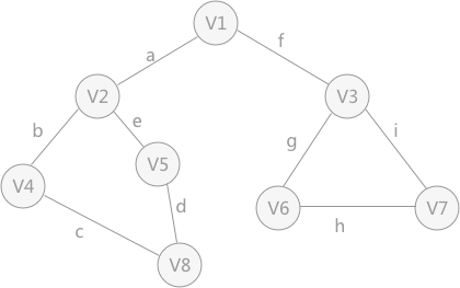 例如,图 1 中的无向图是由 V1~V7 的顶点和编号分别为 a~i 的边组成。当使用深度优先搜索算法时,假设 V1 作为遍历的起始点,涉及到的顶点和边的遍历顺序为(不唯一):
