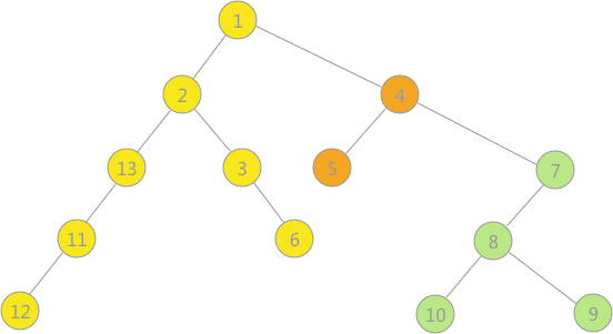 1 2 13 3 6 12 11 4 5 7 8 9 10