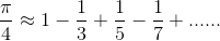 利用公式 ① 求 π 的近似值,要求累加到最后一项小于 10^(-6) 为止。实现代码如下: