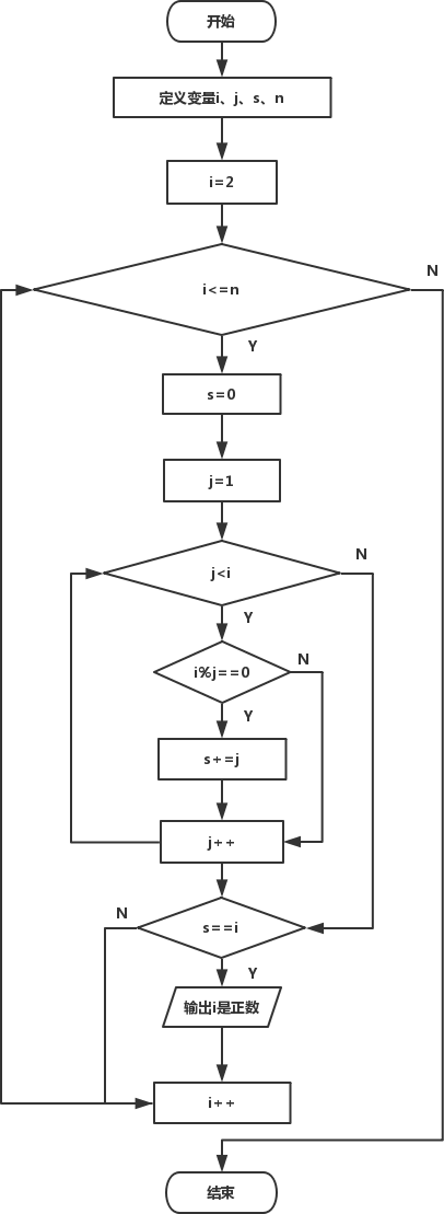 int i, j, s, n; /*变量i控制选定数范围,j控制除数范围,s记录累加因子之和*/