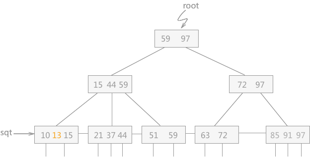 图 2 插入 13 后的B+树