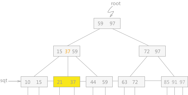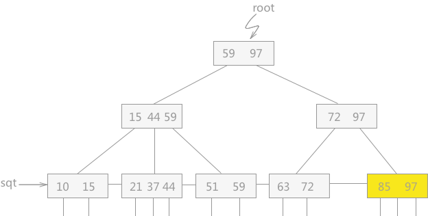 图 6 删除97后的B+树