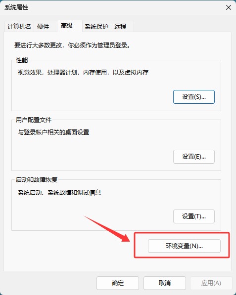 弹出的窗口中点击“环境变量”: