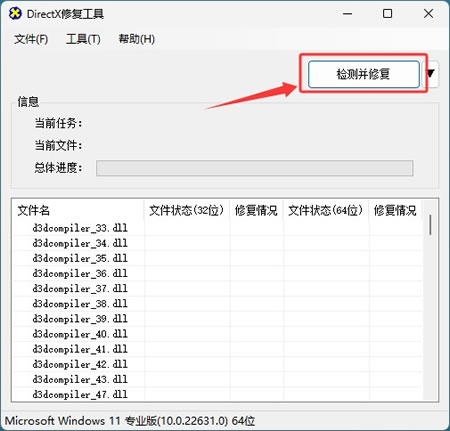 1) 执行修复任务,在工具界面点 “检测并修复”: