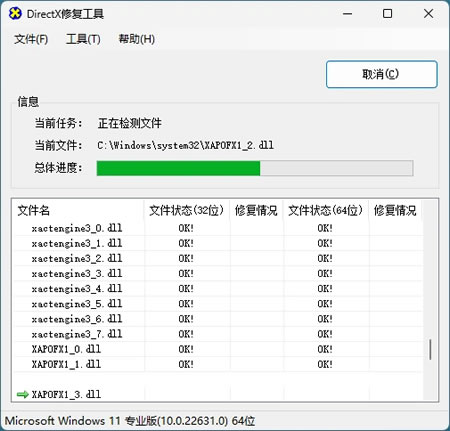 2) 等待检测完成,如果发现问题,DirectX 会自动开始修复: