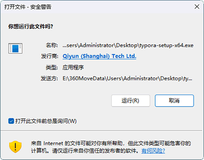1) 我使用的是 Windows x64 系统,下载得到 typora-setup-x64.exe 安装包,双击启动执行。
