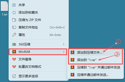 这里以在桌面上新建的 1.txt 文件为例,分别教大家用 WinRAR 压缩和解压文件:1) 压缩文件