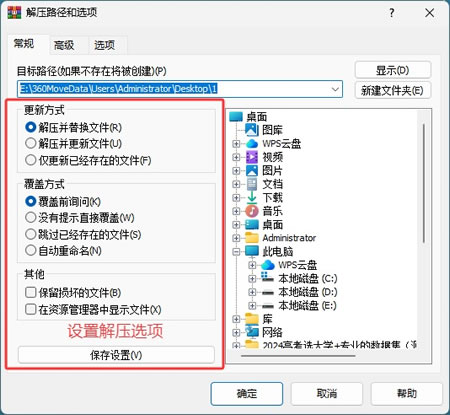 ②:解压文件可以打开下图所示的对话框,对解压过程做设置: