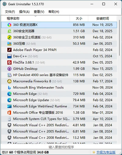 Geek Uninstaller的核心定位是解决Windows系统自带卸载功能的三大痛点: