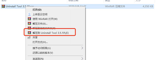 准备安装文件,下载 Uninstall Tool 3.5.10.rar 压缩文件,找到该文件并右键单击,选择 “解压到 Uninstall Tool3.5.10”,将其解压到指定文件夹。