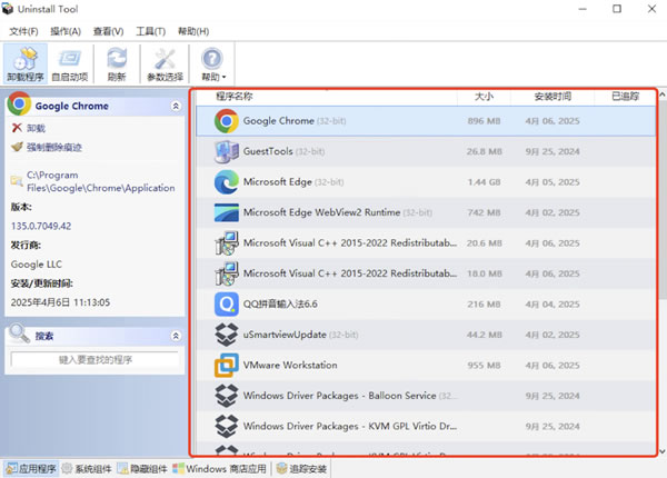 运行 Uninstall Tool后,会呈现出一个已安装程序列表,在该列表中仔细查找并选择需要卸载的软件。