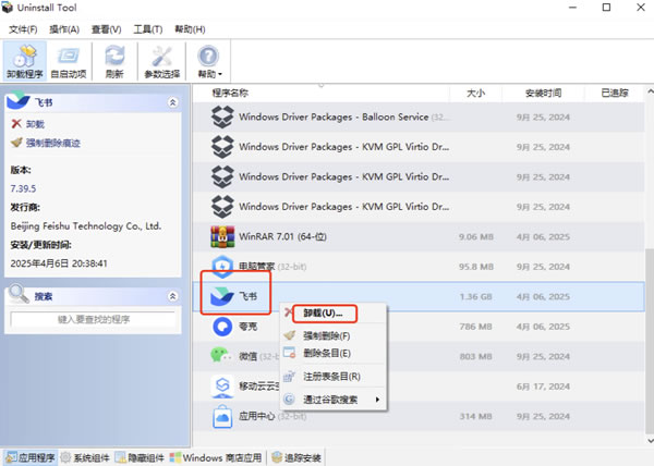 选中目标软件后,再次点击鼠标右键,在弹出的菜单中选择【卸载】选项。