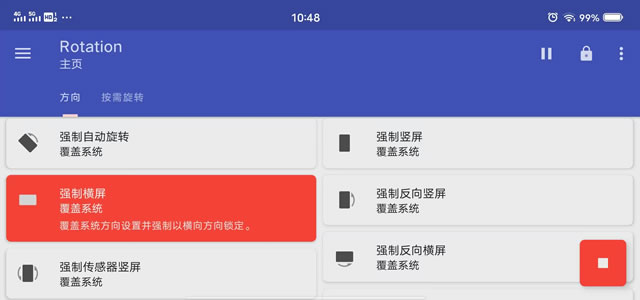 Rotation是一款安卓平台的实用工具,轻量、免费,用户可以根据需要锁定或解锁屏幕方向,提供强制横屏、强制竖屏、反向横屏、反向竖屏等多种旋转模式,满足用户在不同场景下的需求。Rotation安装包下载地址:Rotation安装包