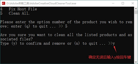 6)确定无误后,输入y并按回车键: