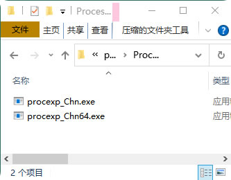 Process Explorer 最大的优点之一就是无需安装,属于绿色便携软件,这对新手用户非常友好。1)将下载好的 汉化版 processexplorerchs.zip 文件解压到任意位置,建议解压到 D 盘,方便以后使用。解压后会看到 "procexp_Chn.exe" 和""procexp_Chn64.exe" 两个主程序文件。