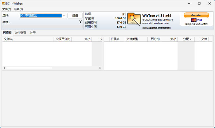 | WizTree | 直接读取MFT | 极快(秒级) | 树状图+树状列表+文件列表 | 个人免费 |