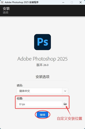 3) 选择安装位置,默认安装路径通常是"C:\Program Files\Adobe"。如果你想安装到其他磁盘,可以点击文件夹按钮自定义安装路径。建议安装到非系统盘,比如D盘,以避免占用系统盘空间。