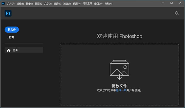 安装完成后第一次启动Photoshop,你会看到主界面包含菜单栏、选项栏、工具栏、面板和工作区等部分。