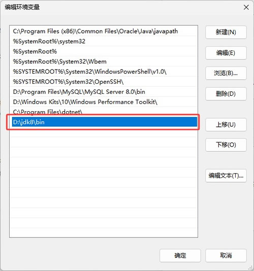 5)点击"新建",添加 JDK 的 bin 目录路径,我的是"D:\jdk8\bin":