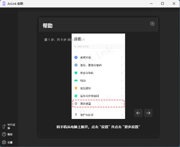 相应地 AnLink 会给出详尽的连接操作步骤: