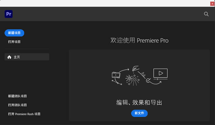 第一次打开Pr,会弹出新建项目窗口。设置项目名称和保存位置后进入主界面: