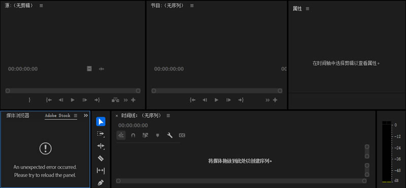 Pr的工作区大致分为四个区域:左上源窗口(预览素材)、右上节目窗口(预览时间线)、左下项目面板(管理素材)、下方时间线面板(剪辑)。