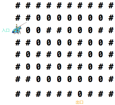 例如,对于下图的迷宫来说,骑士在最终找到出口时的整形变量为: