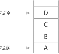 使用栈存储数据元素,对数据元素的“存”和“取”有严格的规定:数据按一定的顺序存储到栈中,当需要调取栈中某数据元素时,需要将在该数据元素之后进栈的先出栈,该数据元素才能从栈中提取出来。如图 1 ,栈中存放了 4 个数据元素,进栈的顺序是 A 先进栈,然后 B 进,然后 C 进,最后 D 进栈;当需要调取 A 时,首先 D 出栈,然后 C 出栈,然后 B 出栈,最后 A 才能出栈被调用。
